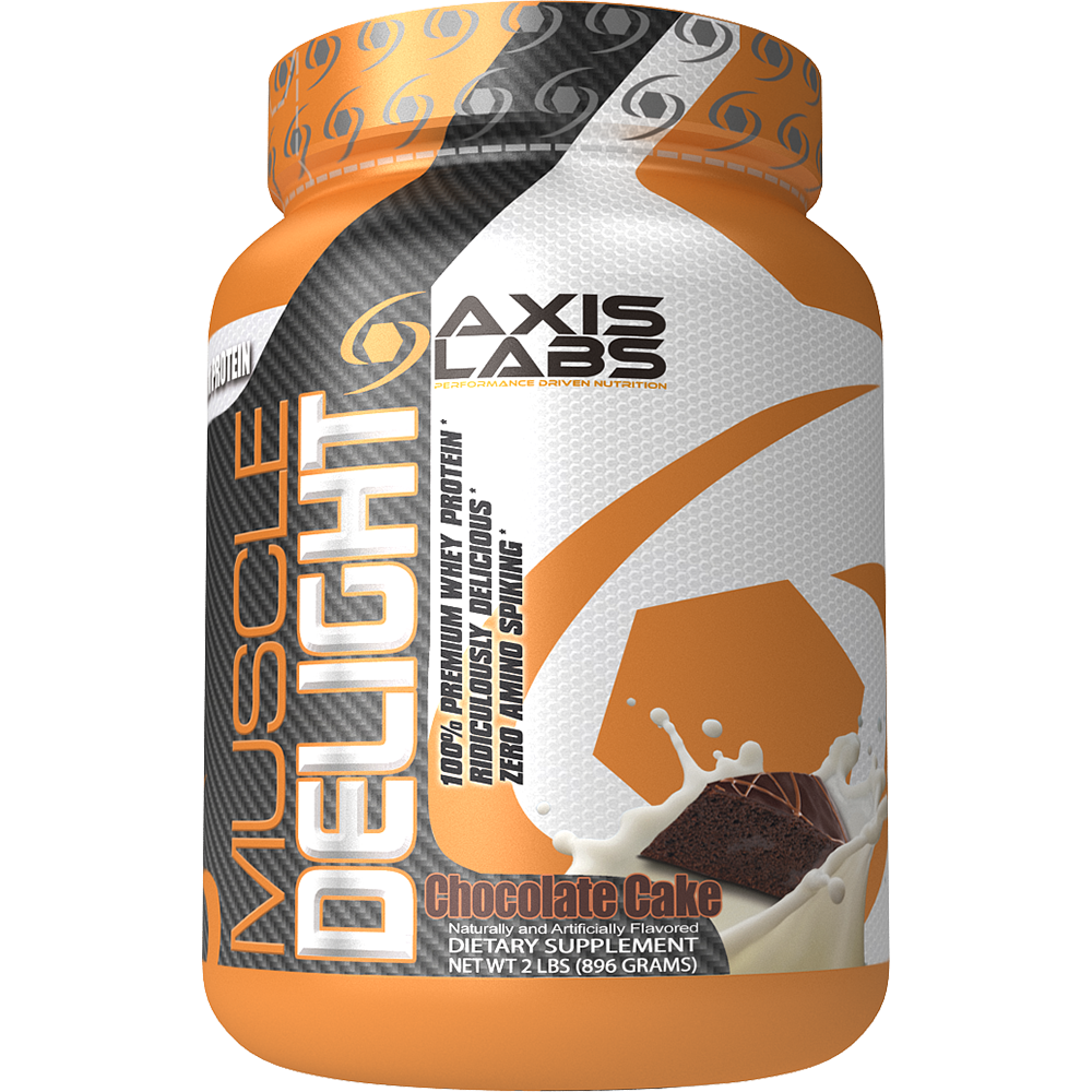 Loading... Please wait...HIGHLIGHTS - Loaded with amino acids - Low in carbohydrates - Zero Amino Spiking - 28 DELICIOUS servings per container - 24g protein per serving - Smooth mixability - Low in fat DESIGN Whether you are an INTENSE bodybuilder or trying to get in shape whey protein is the single most important supplement in building muscle mass and plays a large role in a healthy lifestyle. Axis Labs® Muscle Delight Whey Protein contains a agressive anabolic blend of Whey Protein Concentrate, Whey Protein Isolate and Hydrolyzed Protein. Each serving of Muscle Delight provides 24 grams of protein and all the essential amino acids needed daily to promote serious lean muscle growth. If you are on a low carb diet, Axis Labs Muscle Delight is a perfect choice! Each serving has only 2 grams of carbs, 2 grams of fat and a large 24 grams of protein!