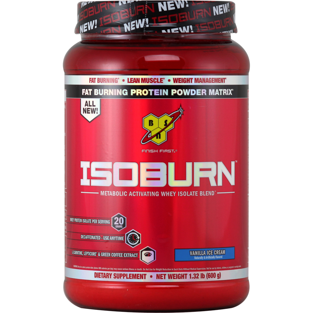 The science of weight loss doesnt have to be complicated. Put in the hard work, make smart nutritional choices and you can turn your body into a fat-burning machine. BSN® Pros have developed the all-new Isoburn™ to support lean muscle and your fat-burning potential. Each serving provides 20 grams of 100% Whey Protein Isolate along with a powerful blend of Green Coffee Extract, L-Carnitine, and LeptiCore®. Because the formula is decaffeinated, you can mix up a great tasting shake any time of the day or night.