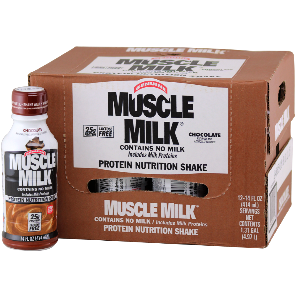 Based on one serving of 14 fl-oz Muscle Milk Chocolate (for carbohydrate content of other sizes and flavors see individual nutrition facts panel).