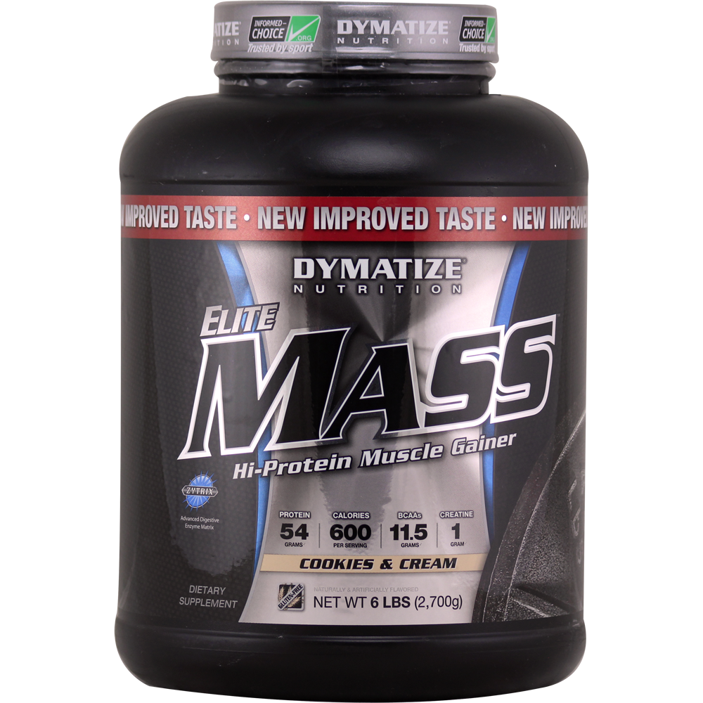 Dymatize Elite Mass is a powerful, high protein, anabolic gainer designed specifically to provide the right formula for packing on quality lean muscle mass in order to obtain the massive size every hardcore athlete desires, while aiding in recovery from intense workouts. This potent formula helps deliver more calories and protein, gram for gram, than other protein options on the market. Each serving contains an astounding 600 calories, 54 grams of protein, a Sustained Release Protein Matrix, a Complex Carb Matrix, Creatine Fusion, a Branched Chain Amino Acid Blend, and an Anabolic Lipid Complex. Believe it - all of this and more in each serving, while being up to 99% sugar free!