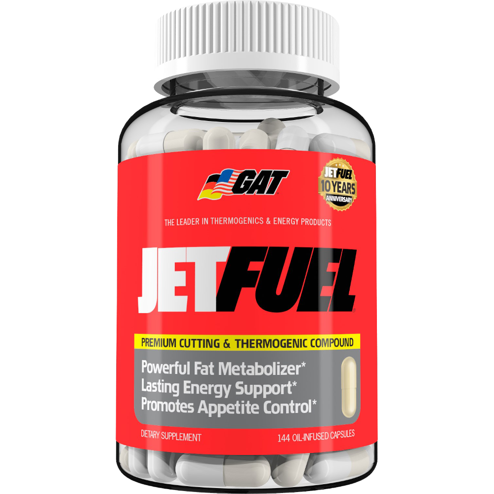 Loading... Please wait...THE GAT JET FUEL ADVANTAGE Since 2005, GAT Jet Fuel Original Liquicaps has proven to be a diet and energy leader. This advanced formula continues to help physique athletes, fitness enthusiasts, bodybuilders and everyday active people reach their goals by metabolizing fat, controlling appetite, and giving them relentless energy.* Each GAT Jet Fuel Original liquicap capsule is loaded with a carefully calibrated blend of MCT oil and more than 20 nutraceuticals. Youll feel it working within moments and enjoy its unmatched energy for hours.* Without question, GAT Jet Fuel delivers. Formula Highlights in GAT Jet Fuel: - GAT Jet Fuel Contains Niacinamide, Vitamin B12, Guarana Seed, Panax quinquefolium, and Caffeine Anhydrous to promote a lasting energy and appetite control.* - GAT Jet Fuel Contains Evodiamine, Synephrine, Yohimbine, and Octopamine formulated to support fat-burning thermogenesis.* - MCTs (Medium Chain Triglycerides) distilled from coconut oil promote efficient delivery of active ingredients upon being released from the capsule.