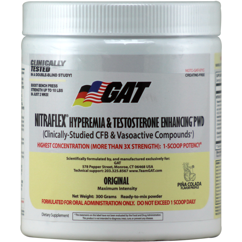 Optional - Stack Nitraflex® "Tablets": Take 3-4 Nitraflex Stimulant-Free Tablets with 1 scoop of Nitraflex Powder 30 minutes before training for dramatic effects. Visit TeamGAT.com for product info.
