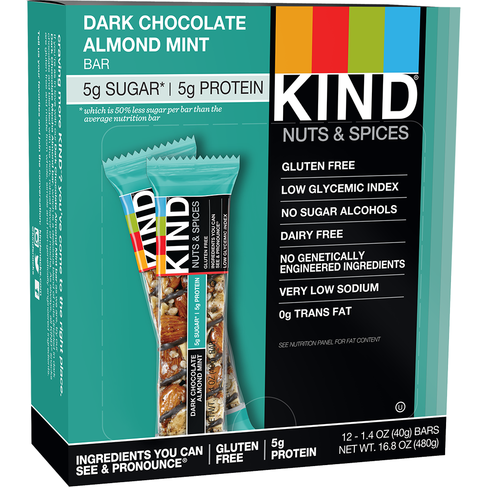 Loading... Please wait...Dark Chocolate Almond Mint is an incredible blend of whole nuts, mint and rich dark chocolate, that, with just 5g of sugar, only tastes like dessert.