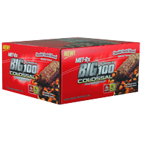 Loading... Please wait...The Big 100 is Power Anytime! The BIG 100 Colossal is sure to satify your appetite with 31 grams of Metamyosyn Protein. This crunchy bar is loaded with chocolate chunks and peanuts, dipped in a dark chocolate coating on three sides, and topped with caramel. Great as a meal replacement bar or for adding extra fuel to growing muscles. This bar is one taste pleaser! Big 100 Colossal Bars are the Huge new meal replacement bars to take the place of the old Big 100 Bars. These bars are giant and filled with all the goodies, peanut butter, chocolate, a caramel covered top, and a whopping 31 grams of protein! Big 100 Colossal Bars make the other bars look like wimps and rightfully so at a giant 3.5 grams per bar. Try a Big 100 Colossal Bar and you will never go back to wimpy little bars again. The Big 100 is Power Anytime!