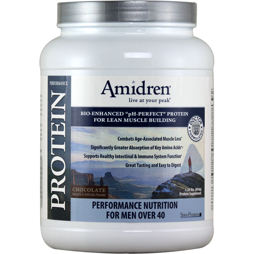 Amidren Performance Protein is the "perfect protein prescription" for men over 40. As you get older, your bodys ability to efficiently use protein to build an preserve lean muscle becomes compromised. This can contribute to sarcopenia (age-associated muscle loss), making it harder for you to gain lean muscle mass. The solution isnt just consuming more protein; its consuming the right protein supplement thats efficiently used by your body to help you overcome age-related challenges. Thats why Amidren Performance Protein is the right protein supplement for you.†